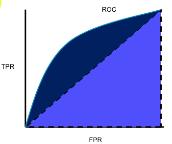 - ROC 곡선의 면적을 표시한 것으로 0과 1 사이의 값을 가질 수 있음