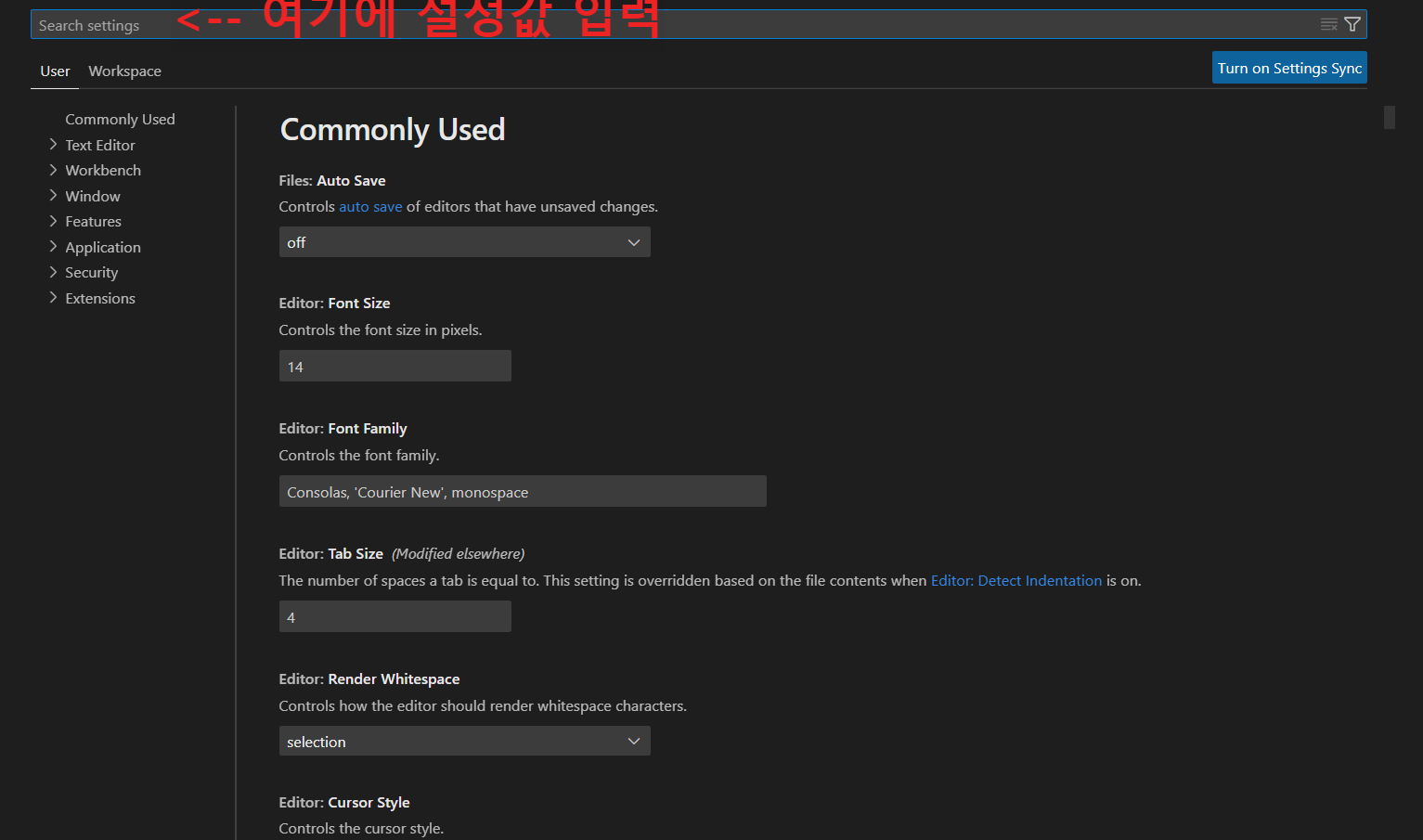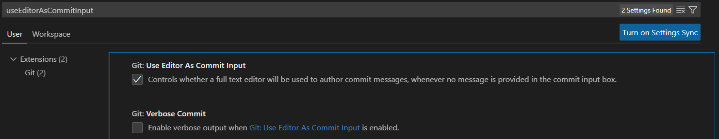 설정창이 열렸으면 검색란에 'useEditorAsCommitInput'를 입력