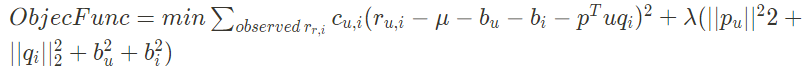 - Adding Confidnece Level: 평점에 따른 신뢰도를 반영 (c_{u,i})
