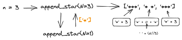 3. append_star(1) 은 if문을 통해 ['*']를 반환한다 -> 가장 작은 문제 단위!