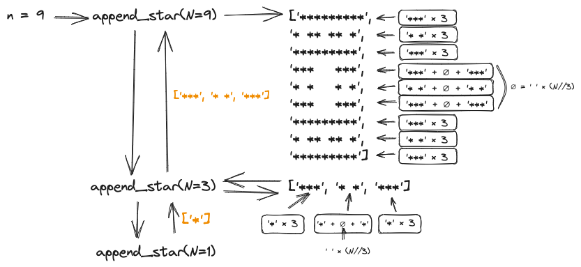 3. append_star(1) 은 if문을 통해 ['*']를 반환한다 -> 가장 작은 문제 단위!