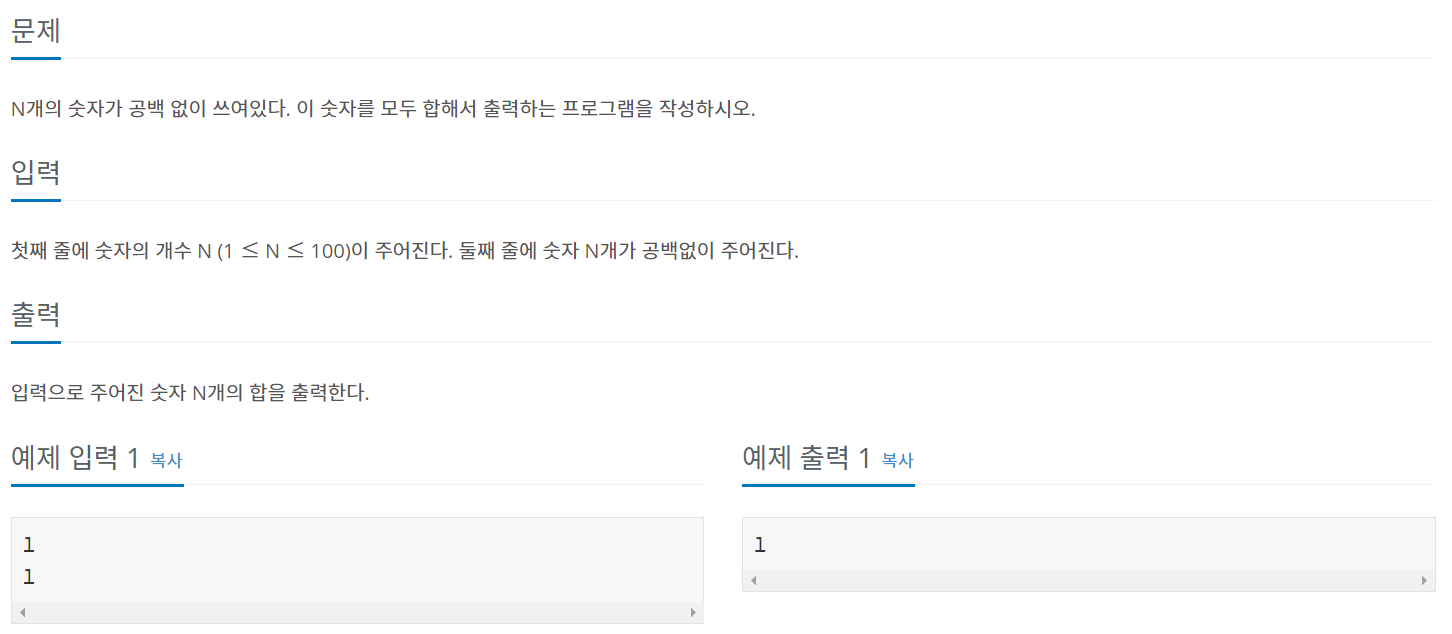 백준 코딩 알고리즘 문제 11720번 풀이 - 사용 언어: C++