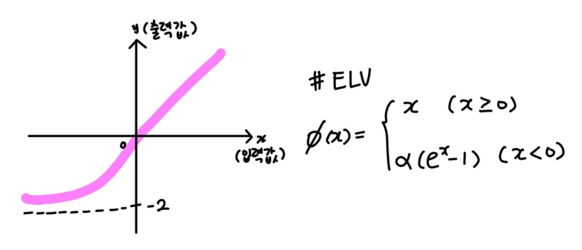 ELU는 max(0, x) 형태로 각져있는 ReLU를 exp를 사용하여 부드럽게 만든 것이다