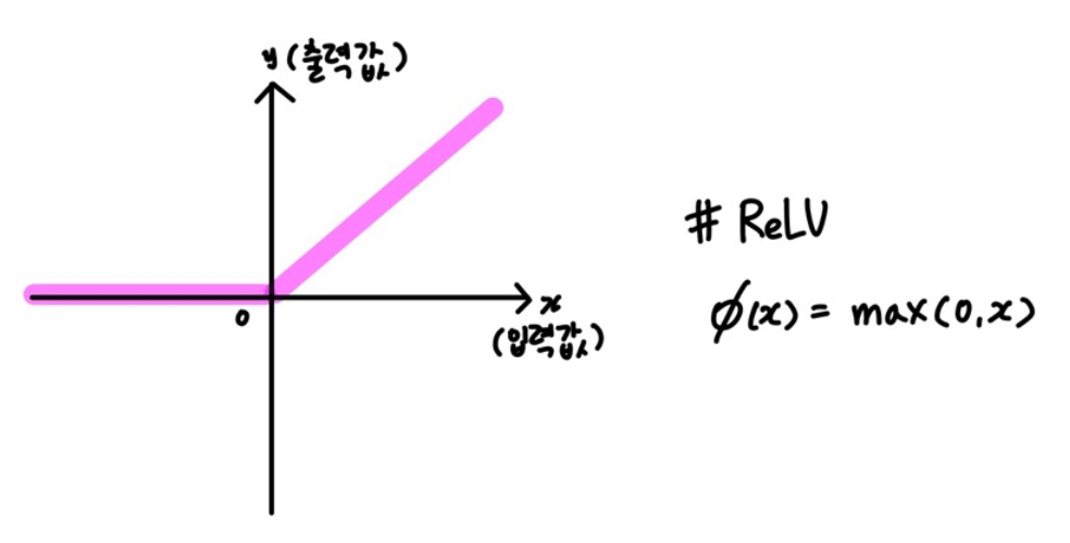 ReLU함수는 0과 입력값 중 큰 값을 내보내는, 즉 양수인 경우에만 값을 전달하는 활성화 함수이다.