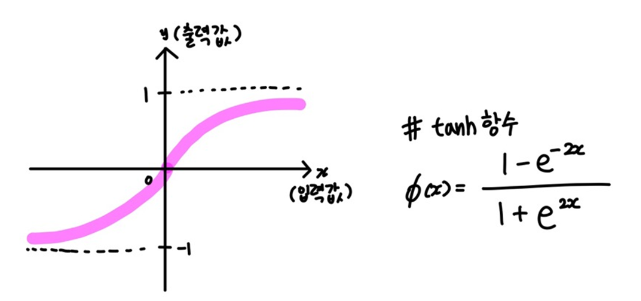 Tanh 함수는 시그모이드 함수를 1과 -1의 임계값으로 scaling하여, 함수값의 중심을 0으로 맞춘 활성화 함수이다