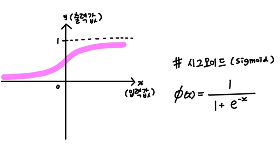 시그모이드 함수는 작을수록 0에 가까운, 클수록 1에 가까운 연속적인 실수값을 내뱉으며,