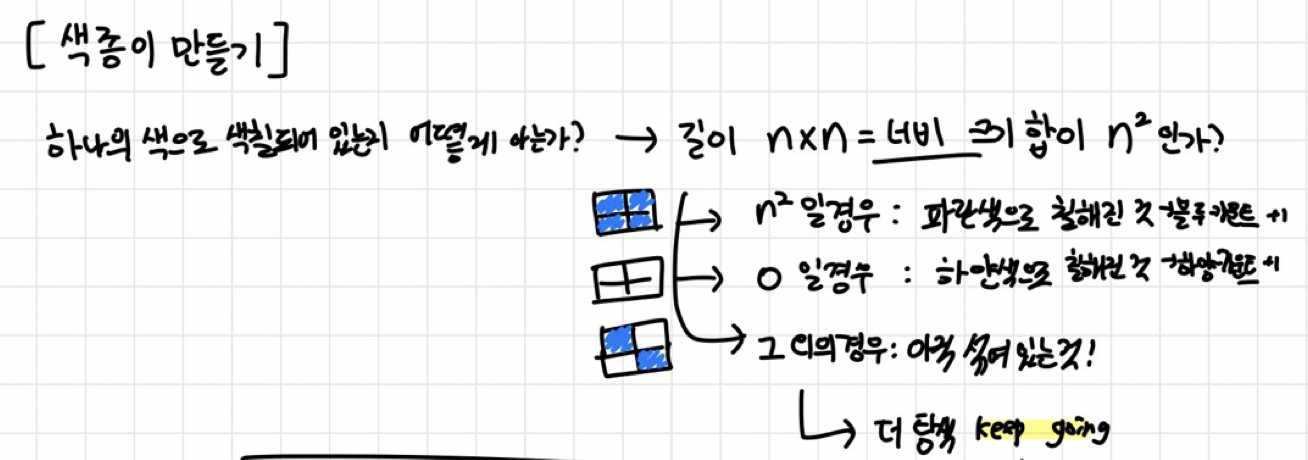 우선 파란색 종이냐, 하얀색 종이냐, 혹은 아직 더 잘라야하는 종이인가를 판별하는 알고리즘을 짜야한다