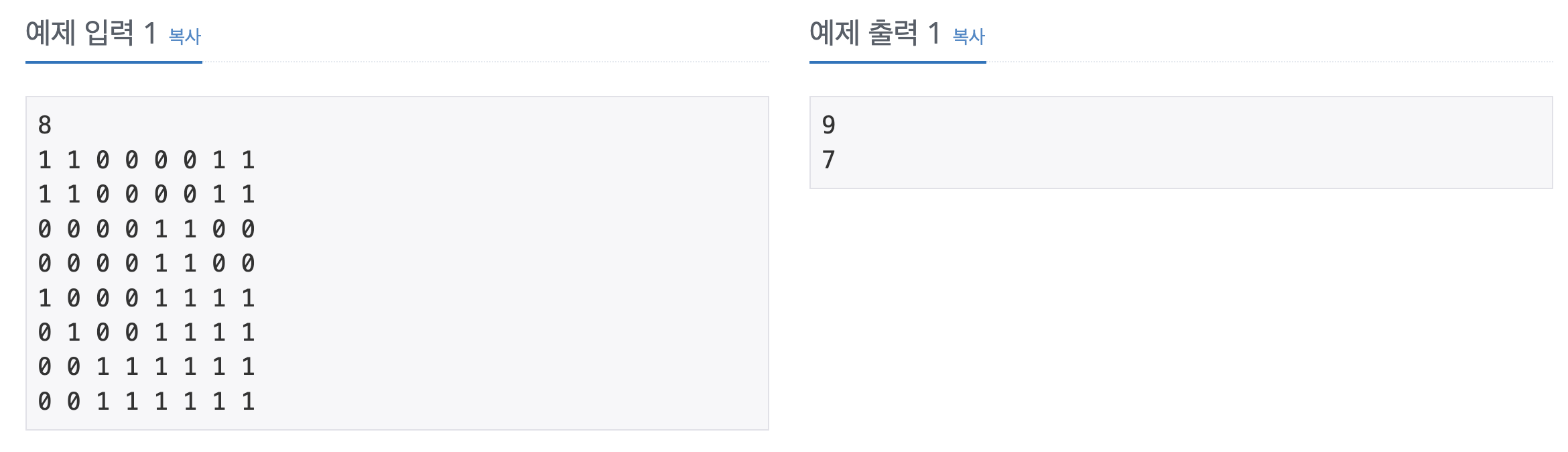 print(f"{white_cnt}\n{blue_cnt}")