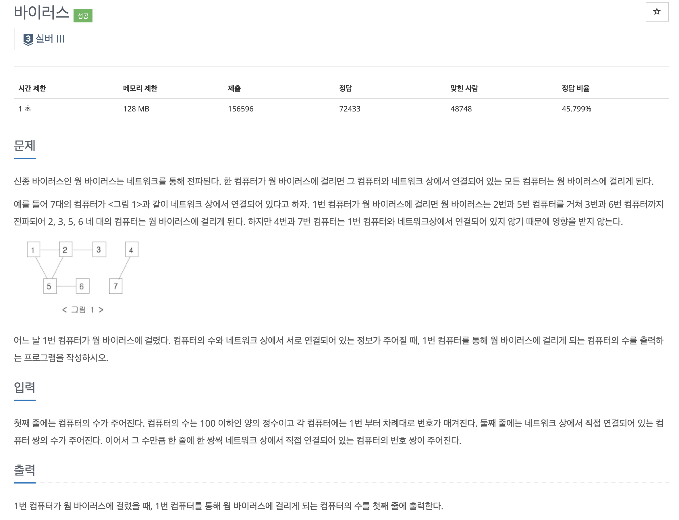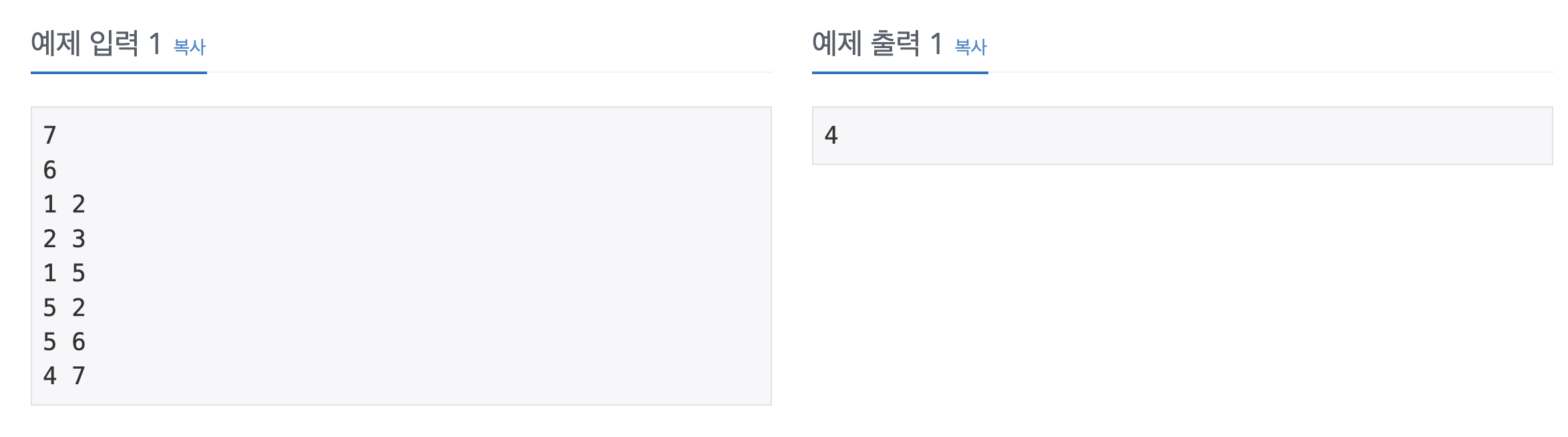 본 문제는 1번 컴퓨터에서 시작했을 때 연결로 인해 감염이 발생하는 컴퓨터의 수를 구하는 문제이다