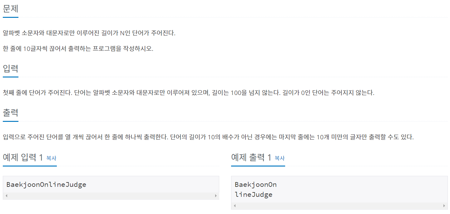 백준 코딩 알고리즘 문제 11721번 풀이 - 사용 언어: C++