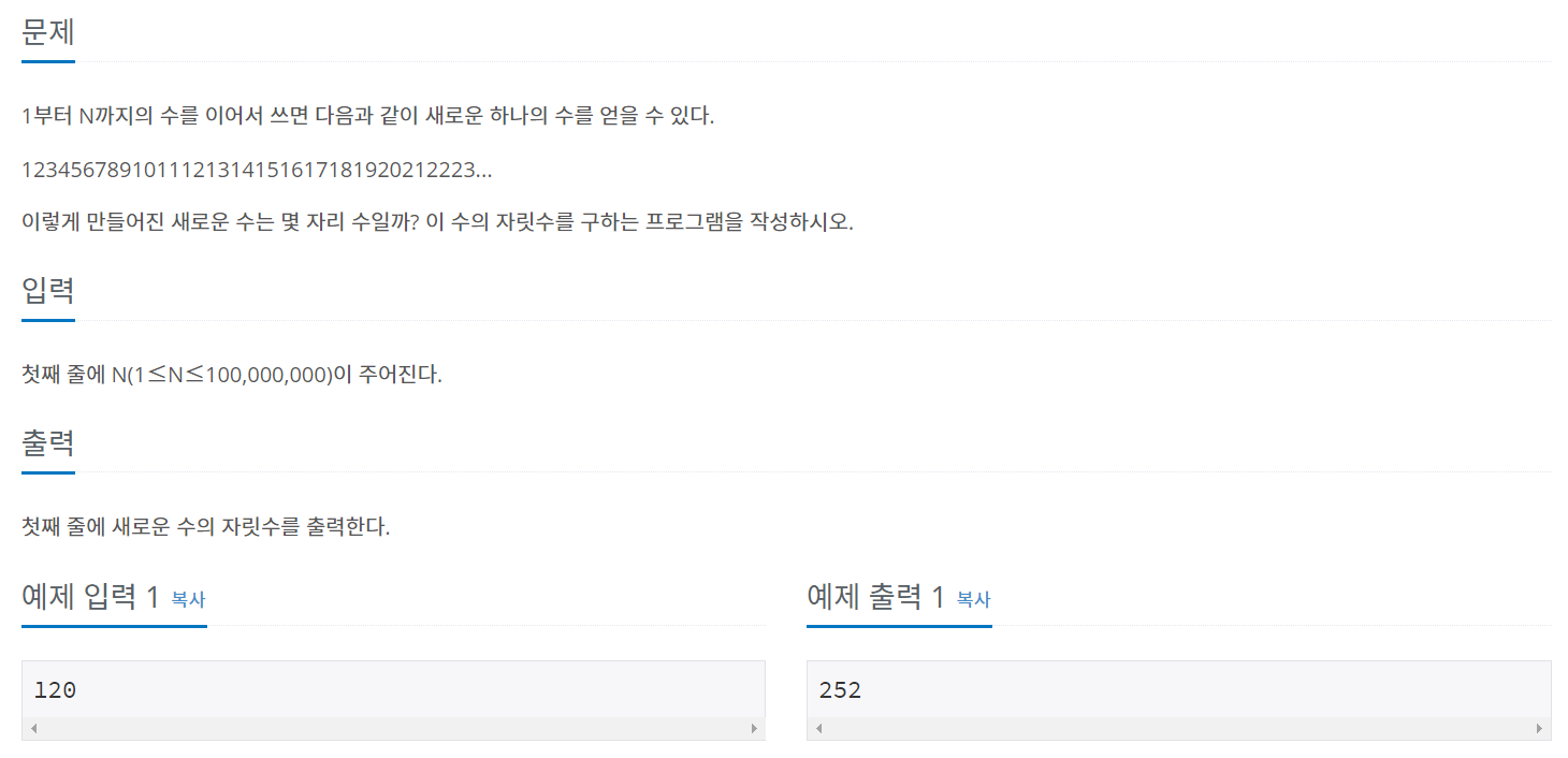 백준 코딩 알고리즘 문제 1748번 풀이 - 사용 언어: C++