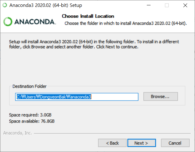 저는 이미 아나콘다를 설치해둔 상태이므로, 설치 진행 중인 이미지는 출처 링크에서 가져왔습니다.