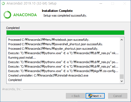 이와 같은 화면이 나온다면 아나콘다 설치가 완료된 것입니다.