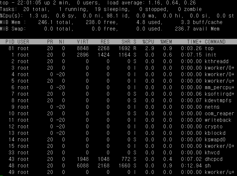 | 3 | QUIT | 실행중지. 단축키 Ctrl+\ |