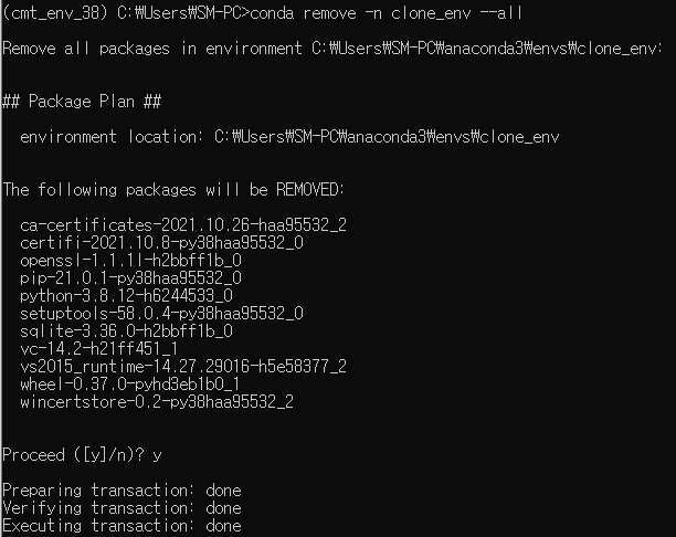 conda remove -n 가상환경이름 --all