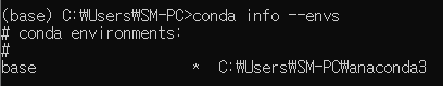 2-1. conda 명령어를 사용하여 현재 생성되어 있는 가상환경 확인