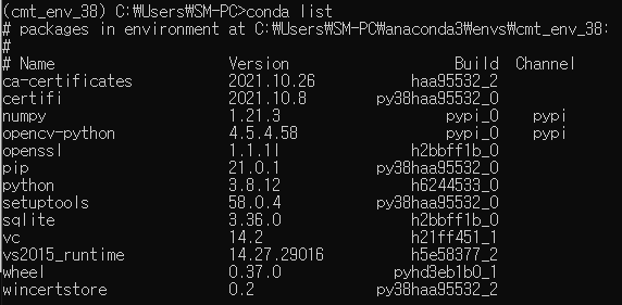 2-3. conda 명령어를 사용하여 제대로 가상환경이 생성되었는지 다시 확인
