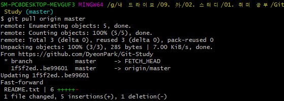 3. 원격저장소의 커밋을 로컬 저장소에 내려받기