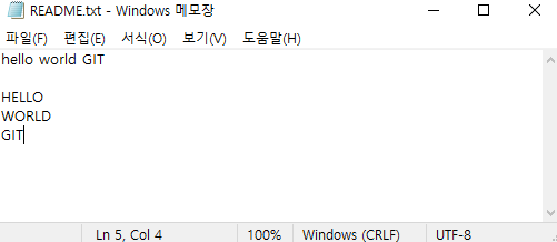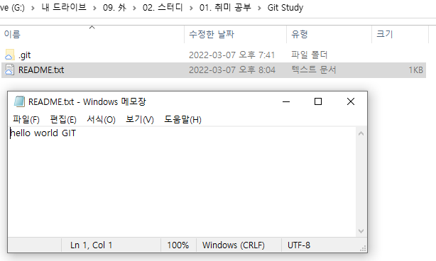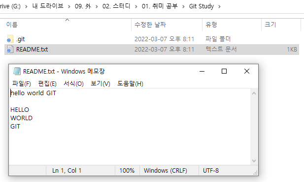 Git Study 폴더에서 다시 README.txt 파일을 열어보면