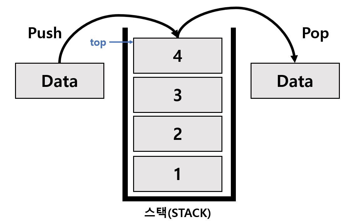 - pop(삭제): 가장 위(top)에 있는 자료를 꺼내며 삭제하는 연산