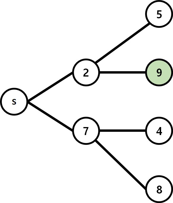 만약 s노드부터 시작하여, 전체 트리에서 가장 큰 수를 찾아야 하는 문제를 풀어야 한다고 생각해보자
