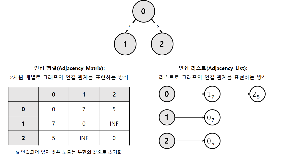 - 그래프를 표현하는 방법에는 두 가지 방법이 있음 → 인접 행렬과 인접 리스트