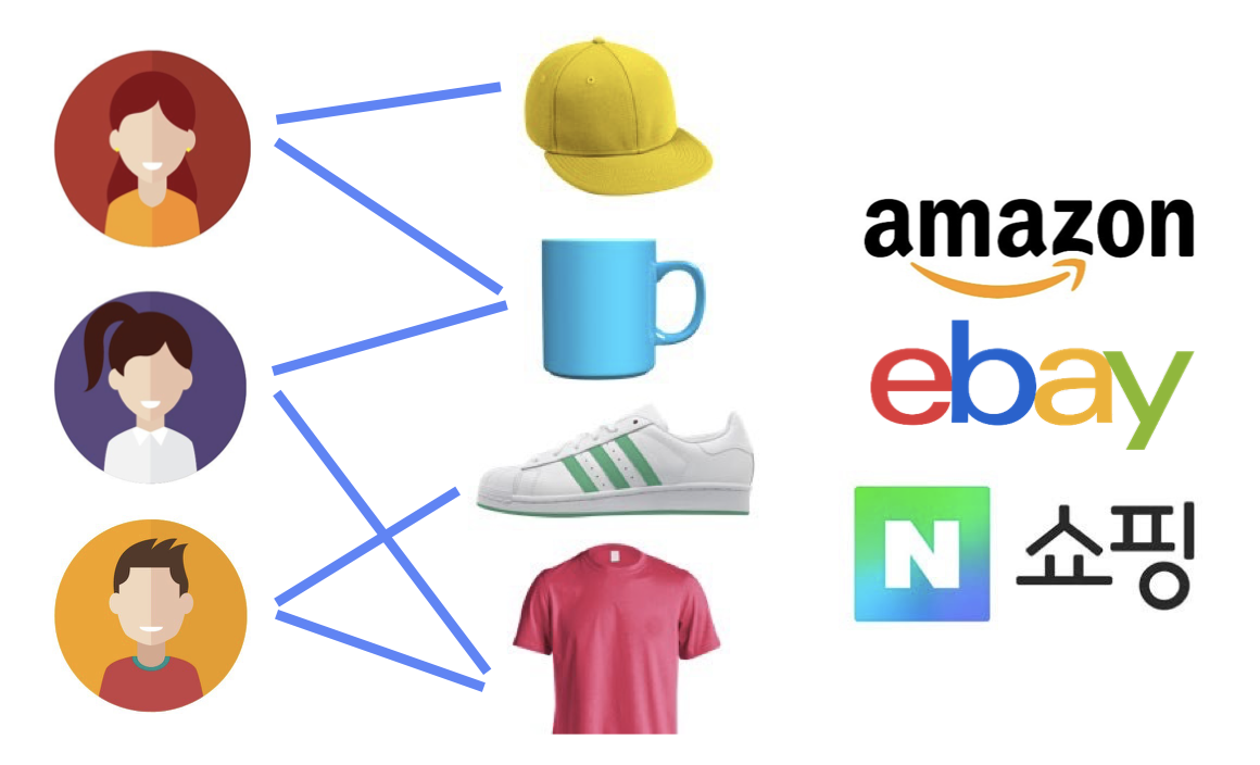 예: 전자 상거래 구매 내역 (사용자-상품), 영화 출연 그래프 (배우-영화)
