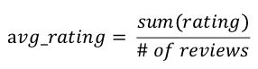 - 우선 좋아요 리뷰의 수를 전체 리뷰의 수로 나누어 average_rating 값을 구함