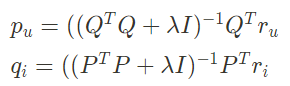 - 유저와 아이템 매트릭스 중 하나를 상수로 놓고 나머지 매트릭스를 번갈아가면서 업데이트하는 것