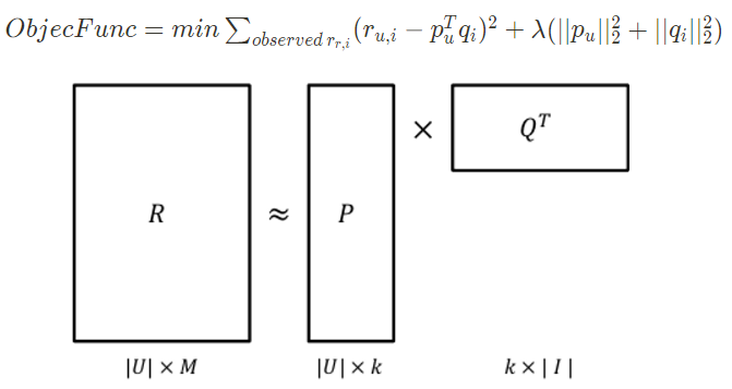 - $R \approx P \times Q^T = \hat{R}$