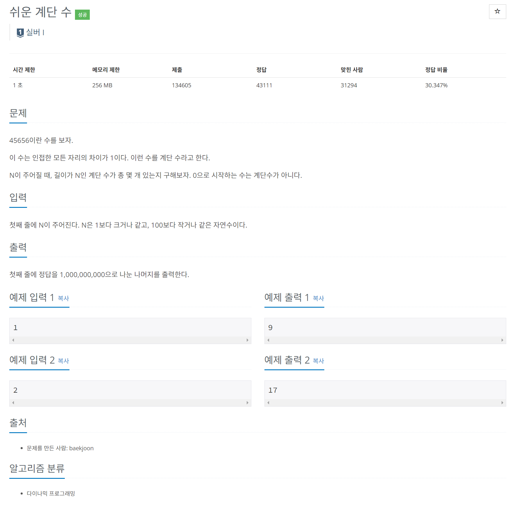 [백준] 10844 - 쉬운 계단 수 [Python(파이썬)]