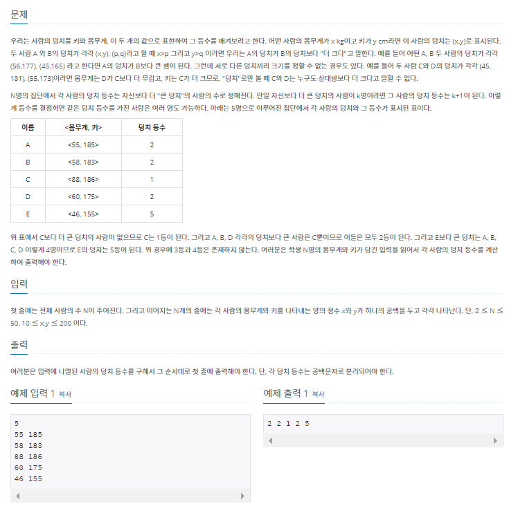 백준 코딩 알고리즘 문제 7568번