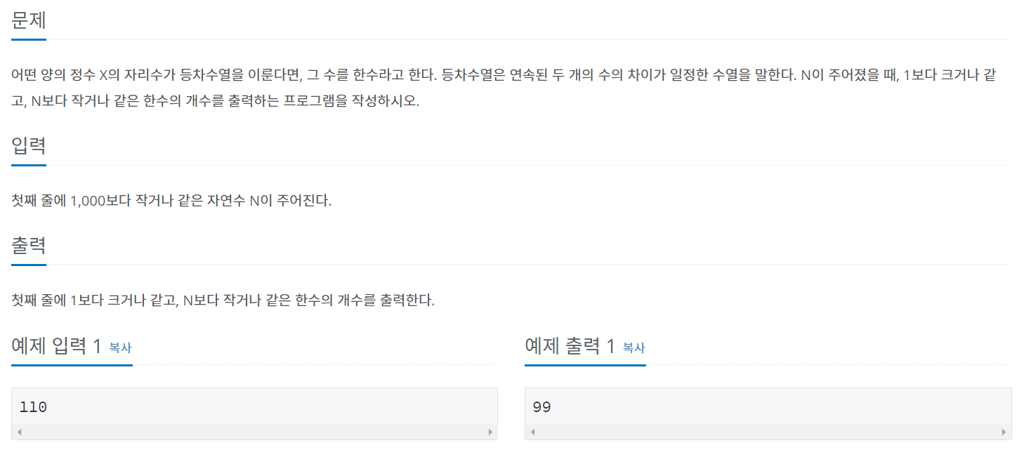 백준 코딩 알고리즘 문제 1065번 풀이 - 사용 언어: C++